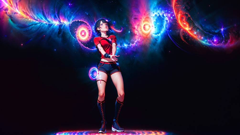 As the celestial hues of the nebula swirl behind her, our Casual Clothes Woman dances with effortless elegance and infectious energy. Each step is a harmonious blend of motion and emotion, creating a mesmerizing spectacle that's sure to enchant all who watch.