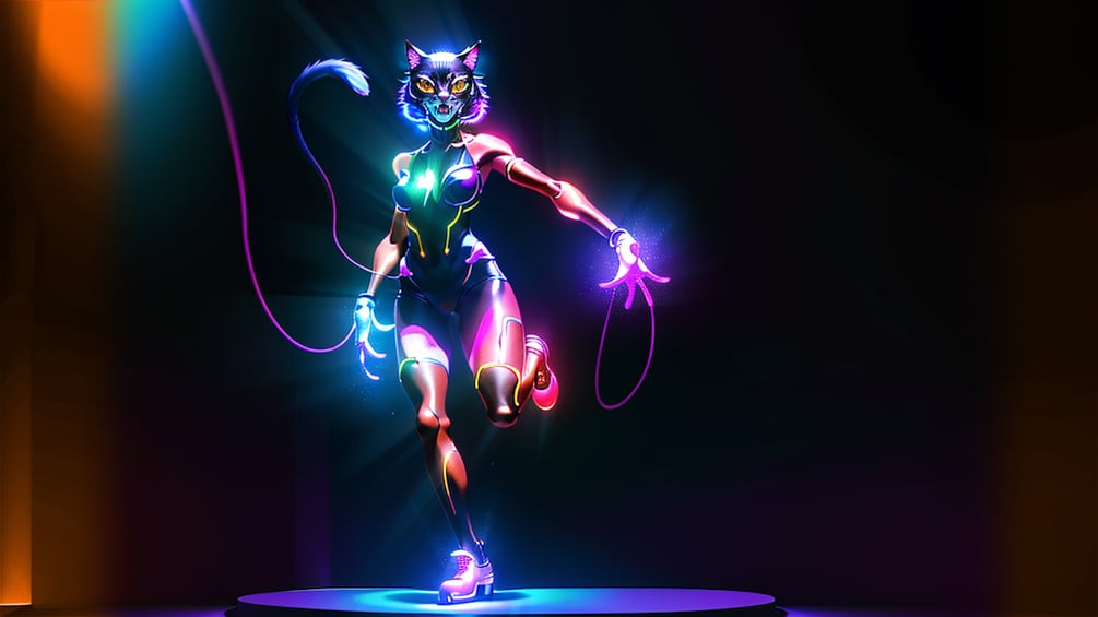 COOL ANIME NEON GLOWING CAT WOMAN DANCING - CAT WOMAN CUSTOM DANCING - COREOGRAPHY - ELECTRO SHUFFLE FORTNITE DANCE